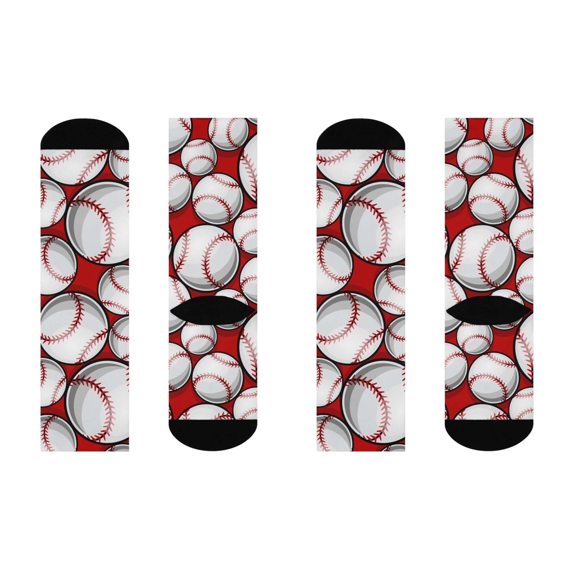 Ideal for casual outings, dressy occasions, or even a fun day of activity, they bring a burst of character to any outfit. The all-over print showcases a playful pattern that truly stands out, making them perfect for baseball enthusiasts or sports lovers alike. Imagine slipping them on during a game day or while lounging at home, adding a touch of spirited fun to your vibe. These socks make a great gift for birthdays, holidays, and sports events, appealing to anyone who appreciates unique, stylish accessories.
