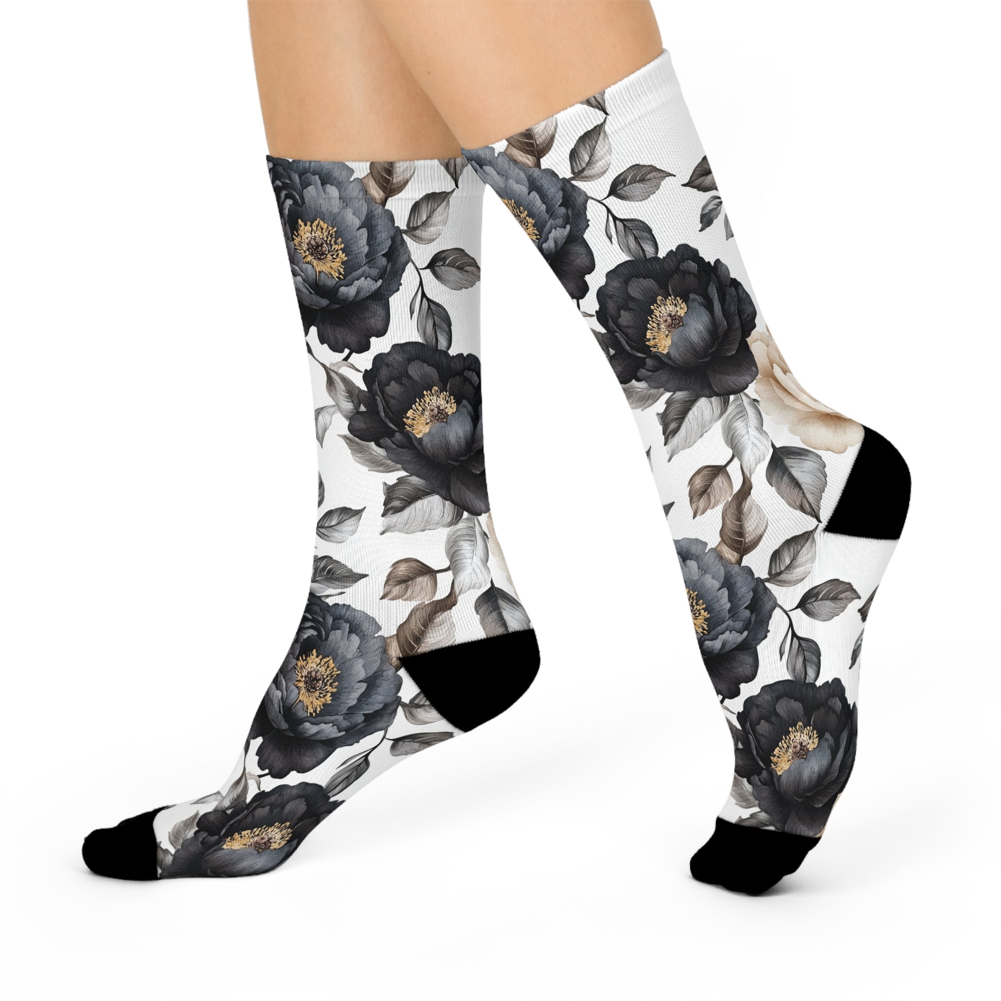 Featuring an all-over floral print, these socks add a touch of elegance to any outfit. The soft and stretchy fabric ensures they fit perfectly, making them ideal for both casual wear and sporty activities. Whether you're lounging at home or heading out, these socks bring a cozy vibe that elevates your day. Perfect for gifting on occasions like birthdays, holidays, or just to show someone you care, they are a delightful addition to anyone’s wardrobe—especially for those who appreciate unique fashion statements!