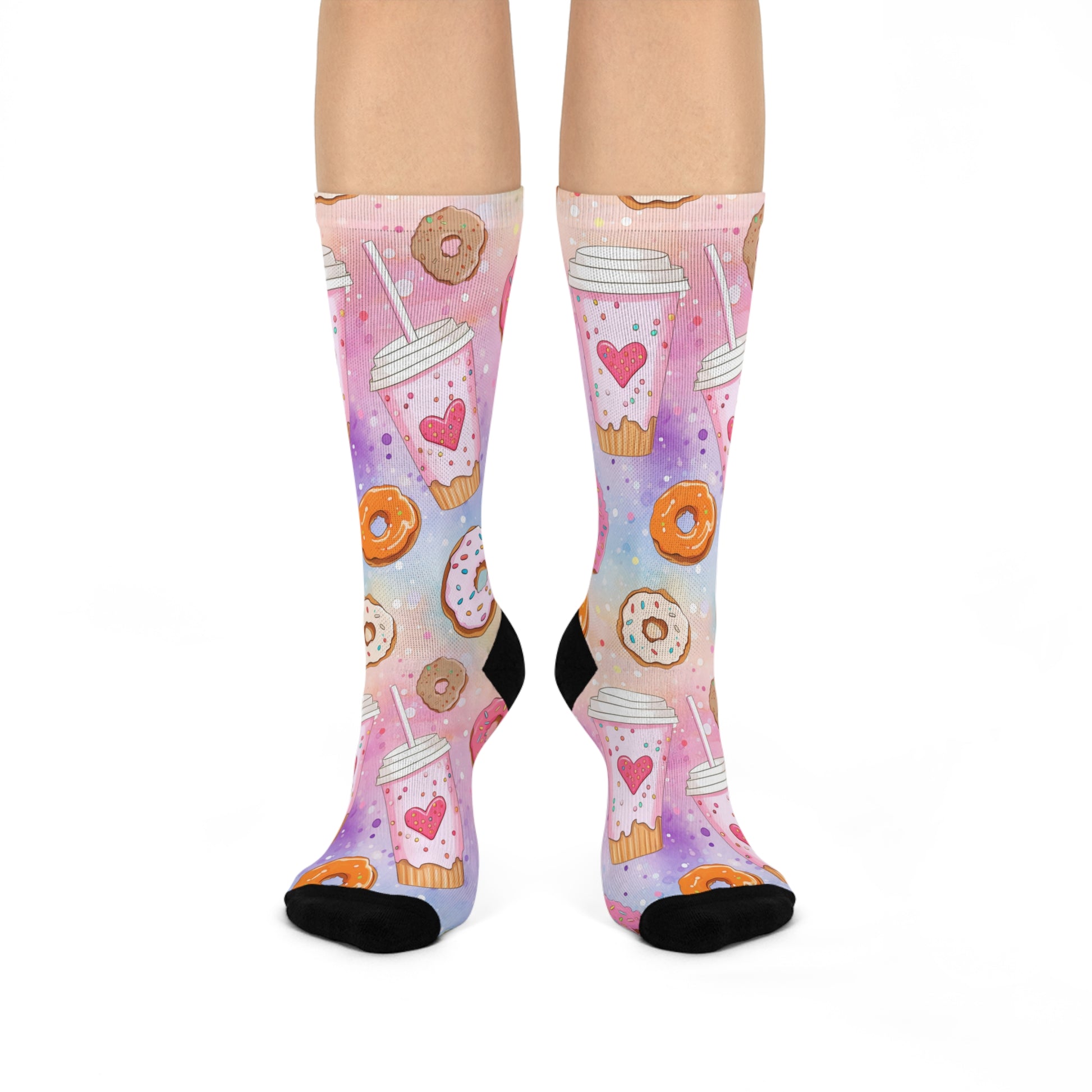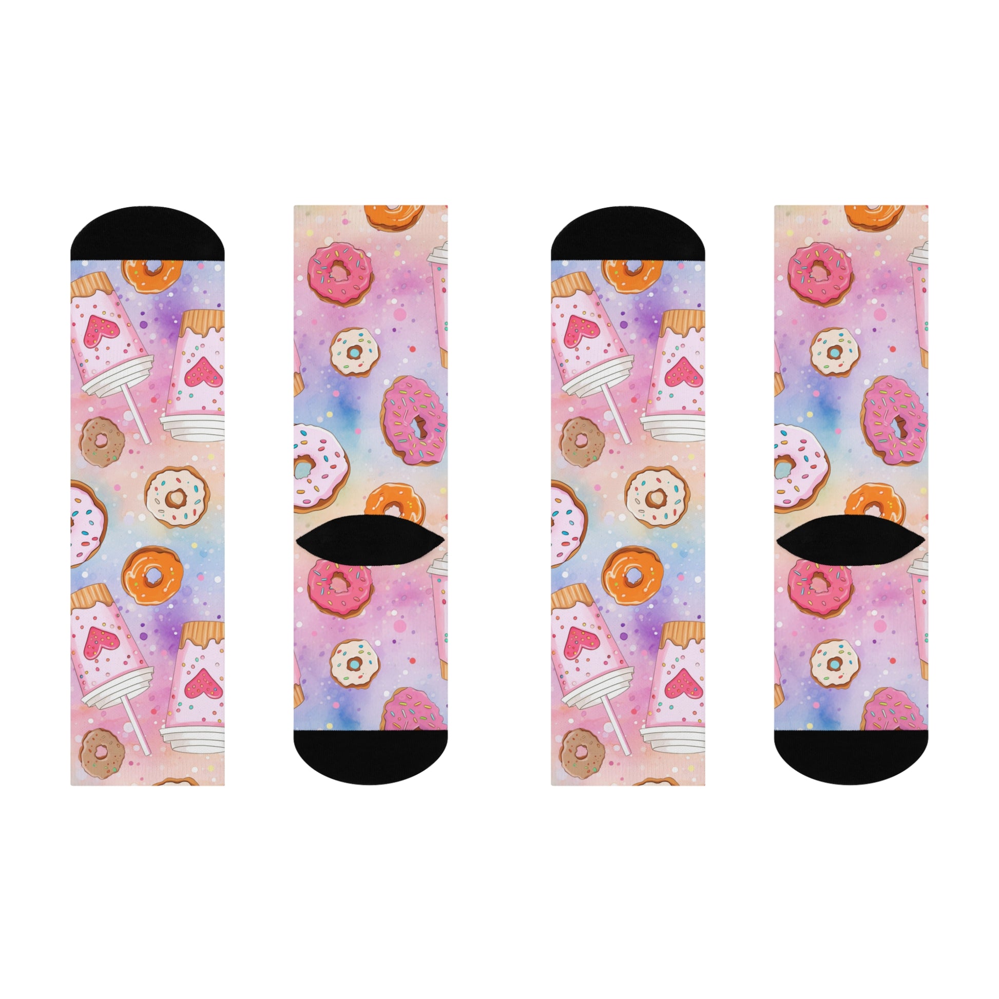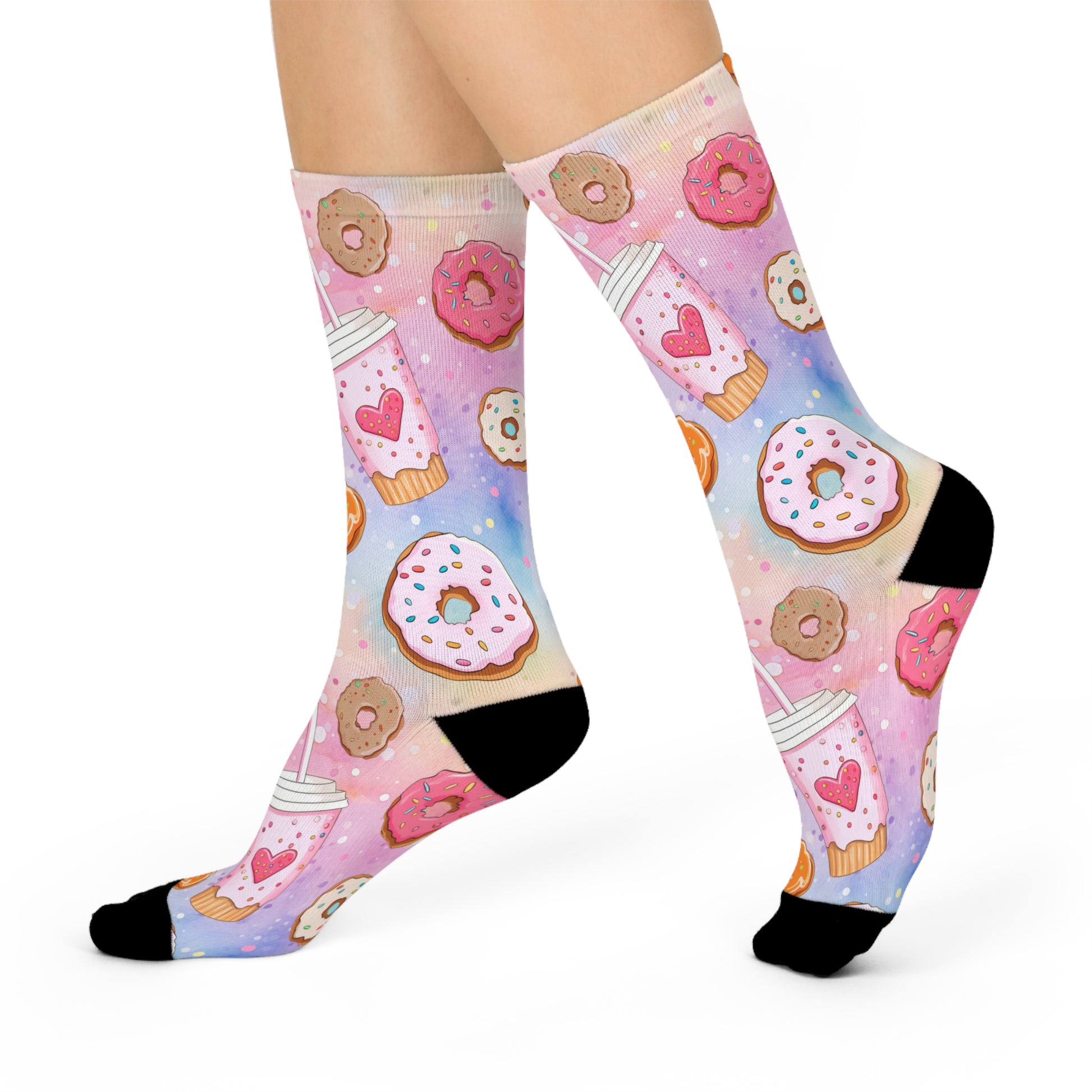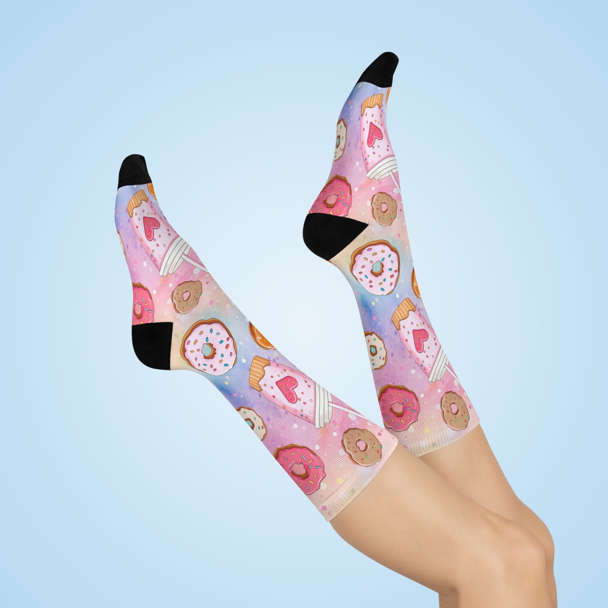 Featuring an all-over print of delightful treats, these socks radiate a playful vibe that brightens up any outfit. Perfect for lounging at home or adding a fun touch to your daily adventures, they are an excellent gift for anyone who loves whimsical fashion.
