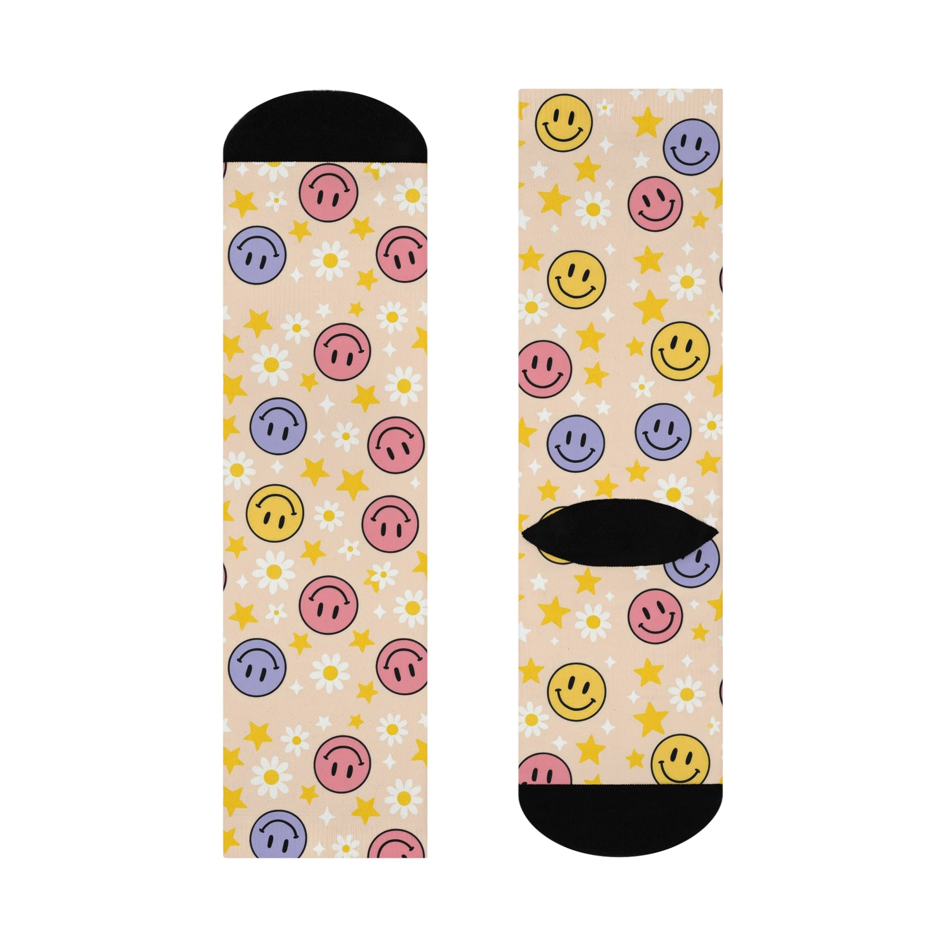 Made for those who love to express their personality, these socks are perfect for casual outings, cozy days at home, or even active adventures. With a cheerful all-over print featuring playful smiley faces and stars, they bring a sense of joy and brightness to any outfit. Ideal for gifting to friends or loved ones, these socks are particularly relevant for celebrations like birthdays, holidays, or just as a treat for yourself!