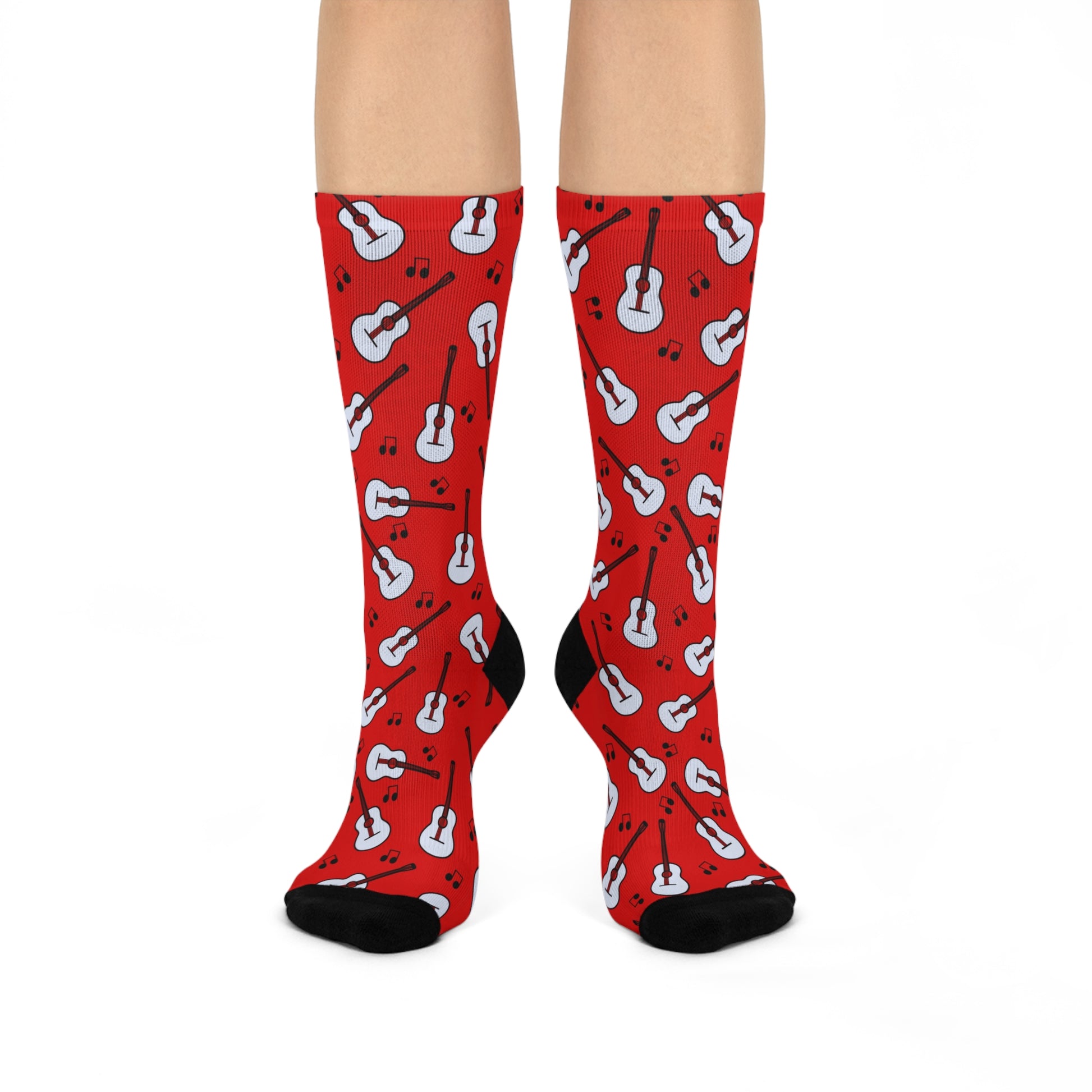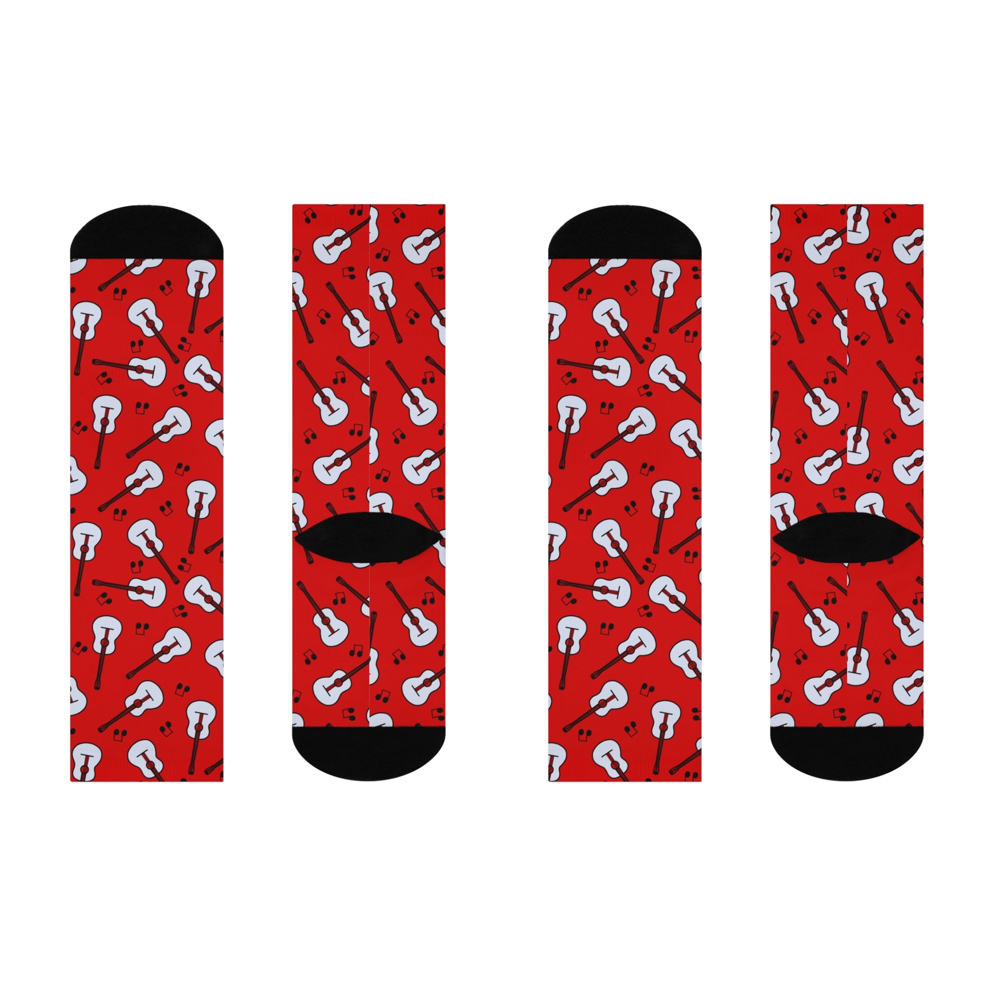 Step into comfort and style with these vibrant Crew Socks, perfect for expressing your unique personality. The all-over print makes them a fun addition to any outfit, whether you're dressing up for a night out or lounging at home. Targeted towards music lovers, these socks feature a playful guitar design, making them an excellent gift for musicians or anyone who appreciates a bit of flair. Ideal for holidays like Christmas or Birthdays, these socks will brighten up any celebration and are bound to spark joy with every step!