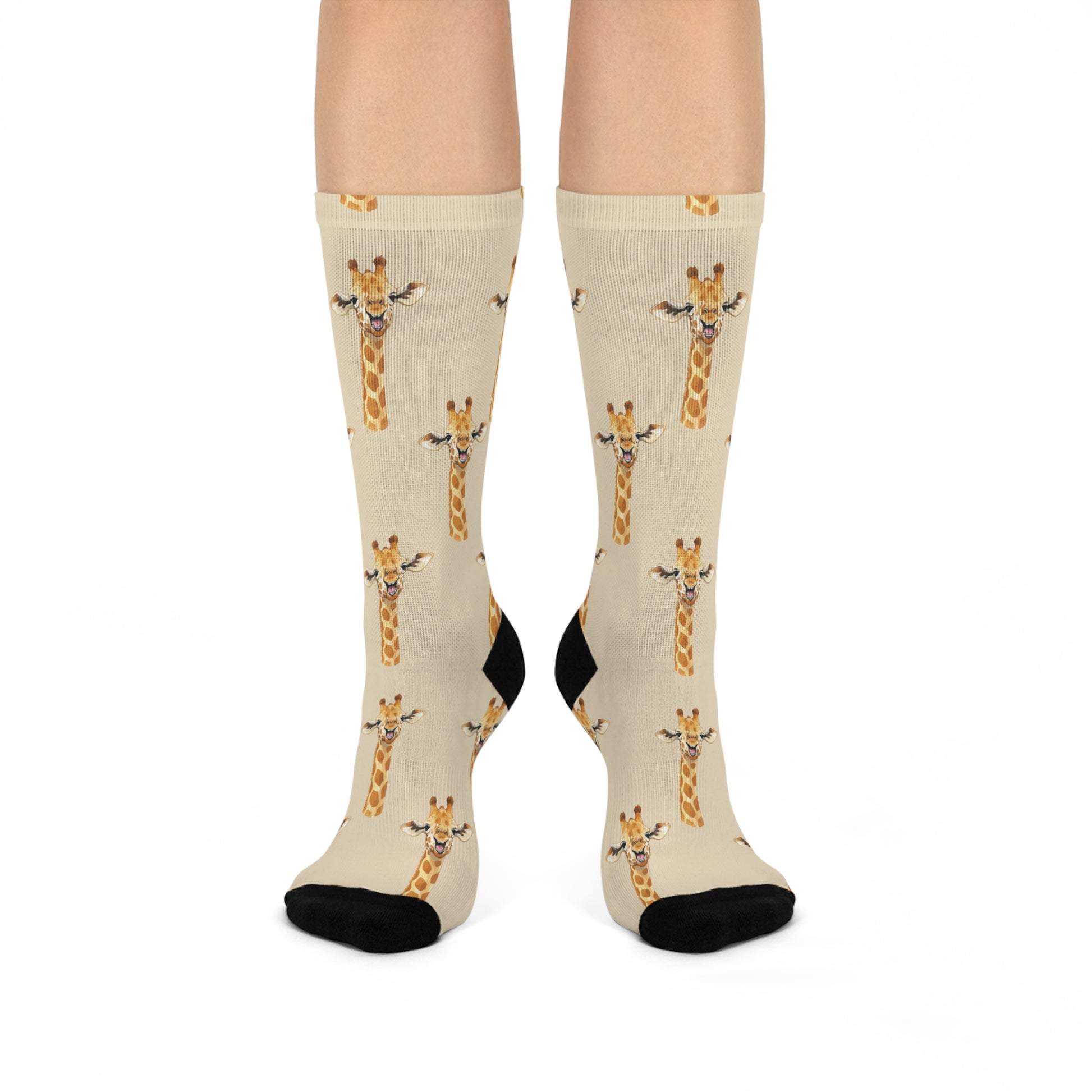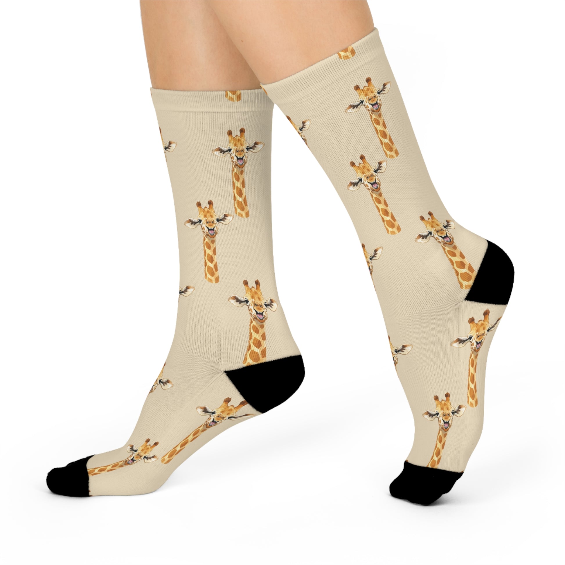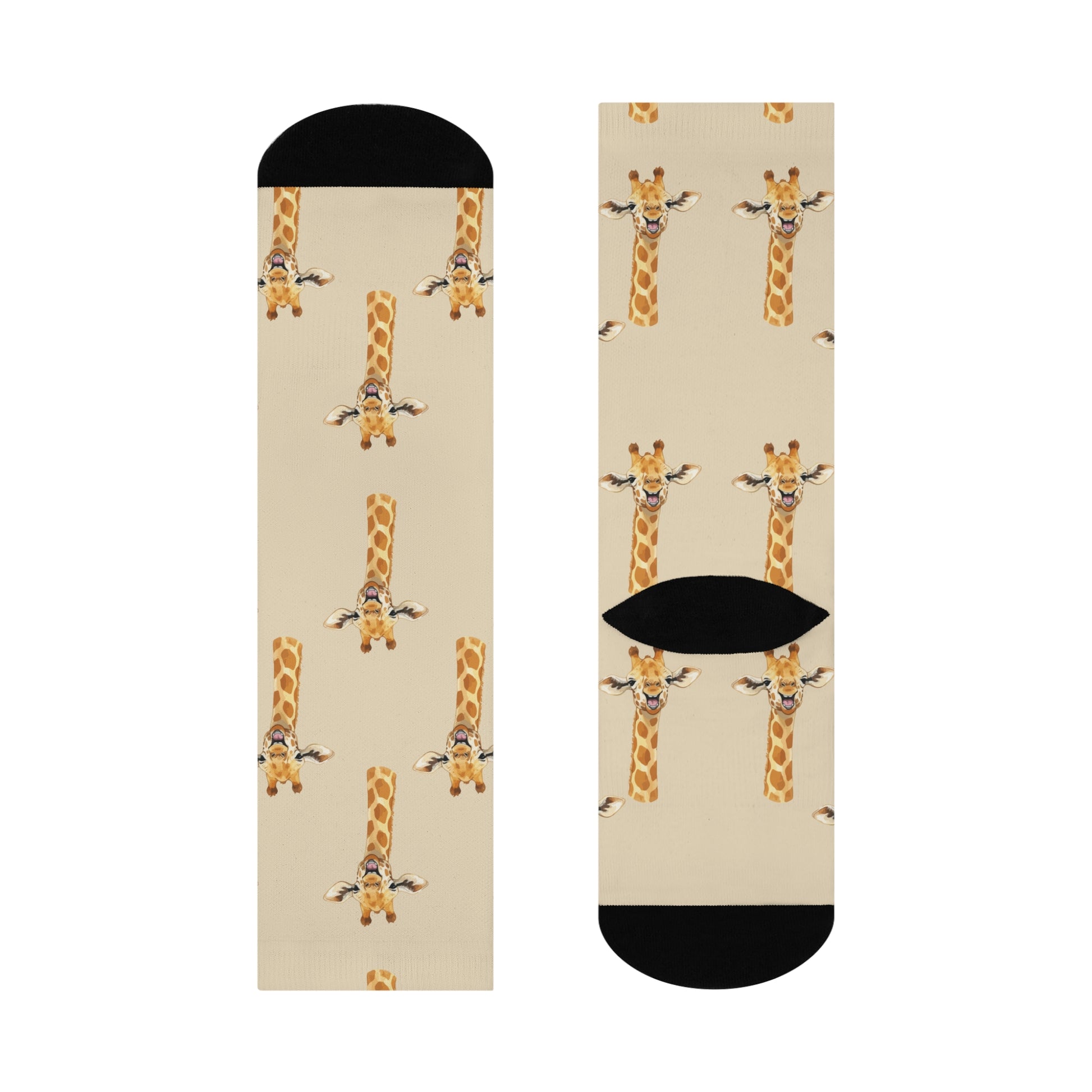 Perfectly designed for casual outings or active adventures, these socks blend vibrant style with practicality. The lively all-over giraffe print adds a playful touch to any outfit, making them an ideal accessory for animal lovers and those who enjoy expressing their unique personality. These socks make for a perfect gift or treat for yourself, ideal for cozying up during holidays like Christmas, or celebrating themed events and birthdays. Crew length for casual, dress, or active occasions. All-over print design with solid black toe and heel.