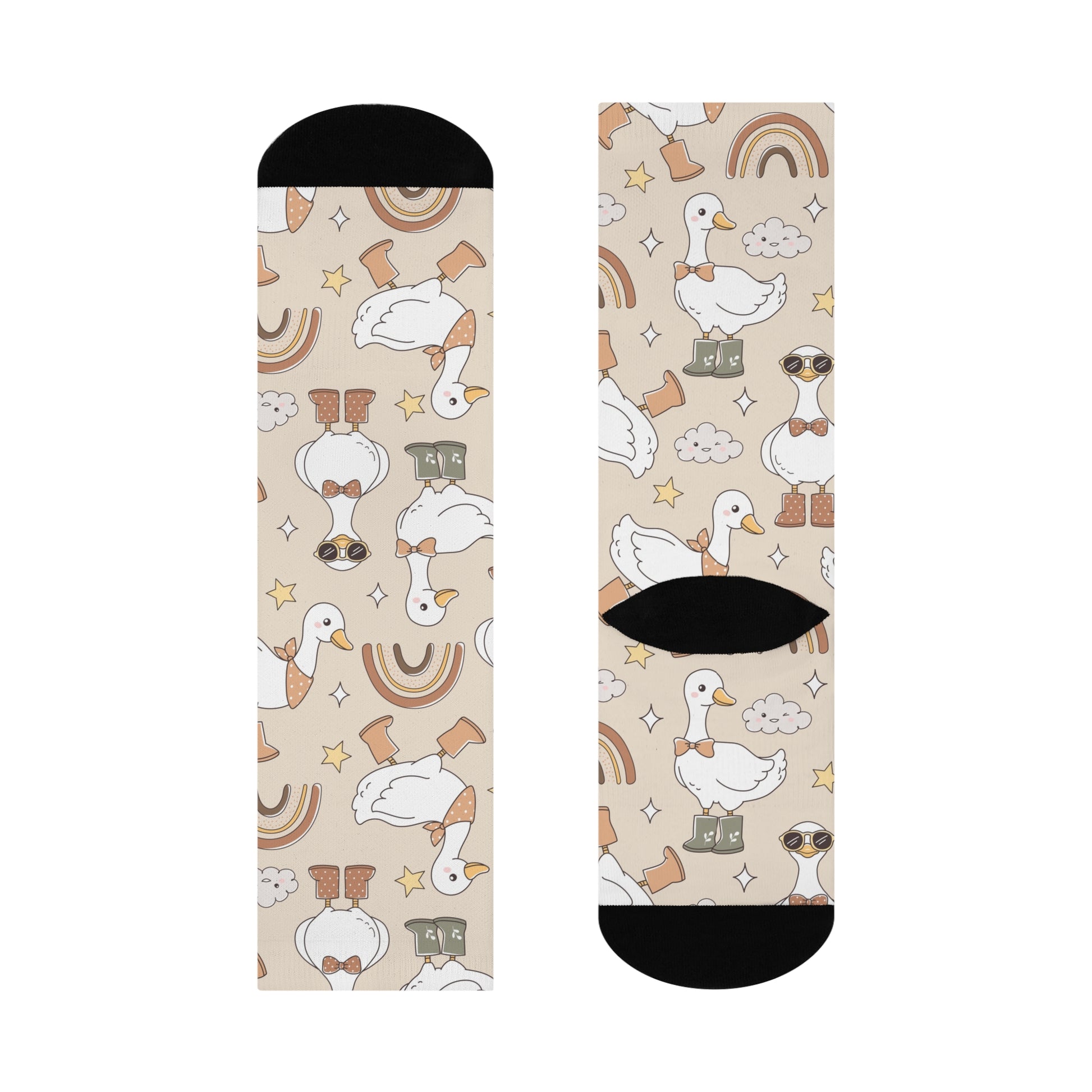 Designed for everyday wear, they bring a playful vibe to any outfit, whether you're dressing up for an occasion or enjoying a casual day out. The all-over print showcases cheerful designs that can brighten up your wardrobe. Perfect for gifting, these socks are ideal for friends and family who love unique fashion statements or enjoy cozy lounging at home. Relevant for holidays and celebrations such as birthdays, housewarmings, and just because moments, these socks are not just accessories—they're a way to express individuality.