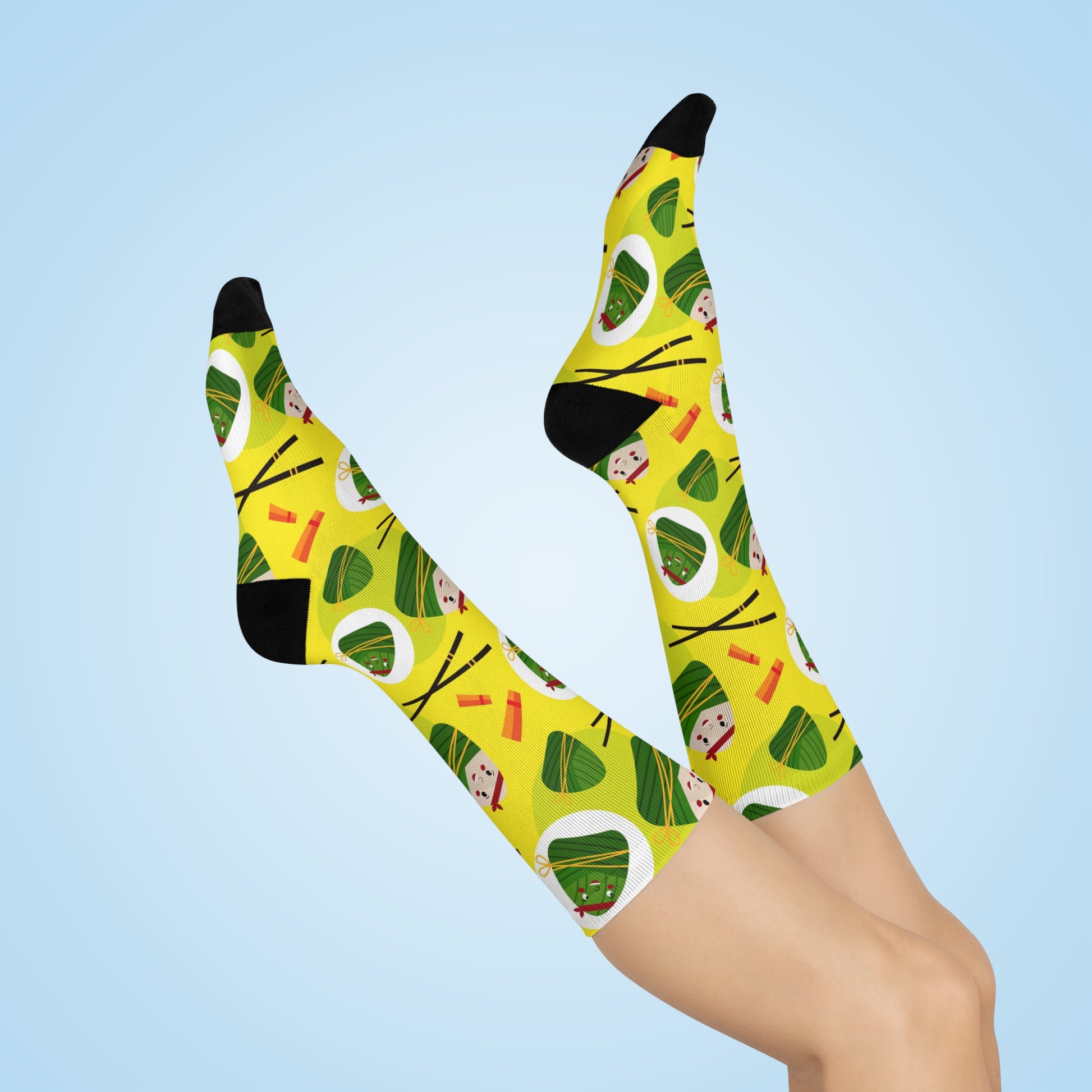 Featuring an all-over print design, these socks are not only fashionable but also comfortable, suitable for casual outings, office wear, or an active lifestyle. The fun sushi theme adds a playful touch, making them great conversation starters.